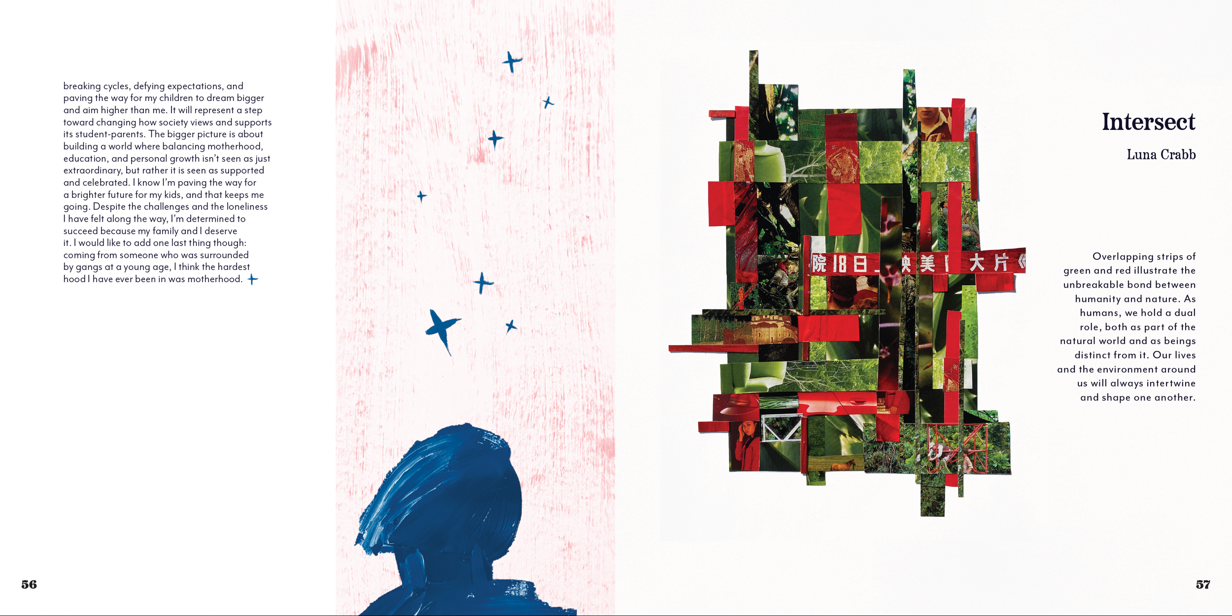 Tidepools Volume 40 focuses on how overcoming obstacles lead contributors to better futures. This year in addition to working on the essays team, Jana served as the project manager, and student design lead. She was responsible for collecting and compiling all students individual files into the master file for each round.
