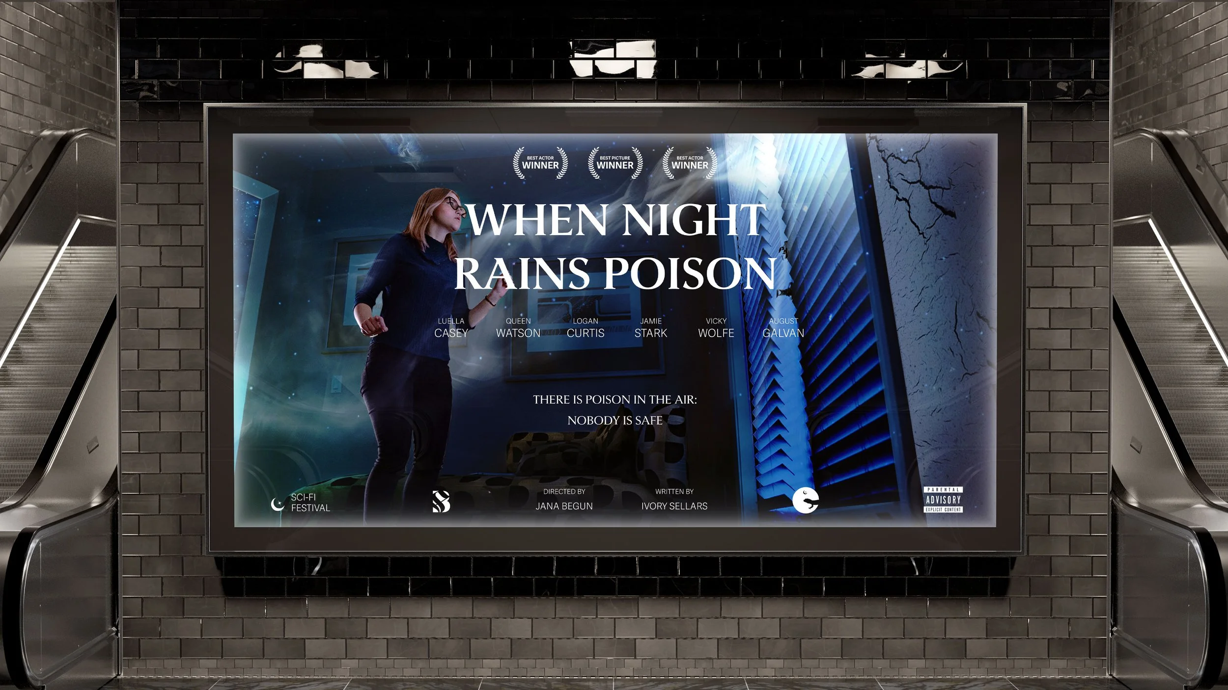 When Night Rains Poison was my final Film Still project from the Advanced Photoshop and Digital Imaging class. The goal of the project is to composite 5-8 images into one a film still that looks like a movie was just paused. To expand on the project, I turned the film still into a movie trailer and poster.
